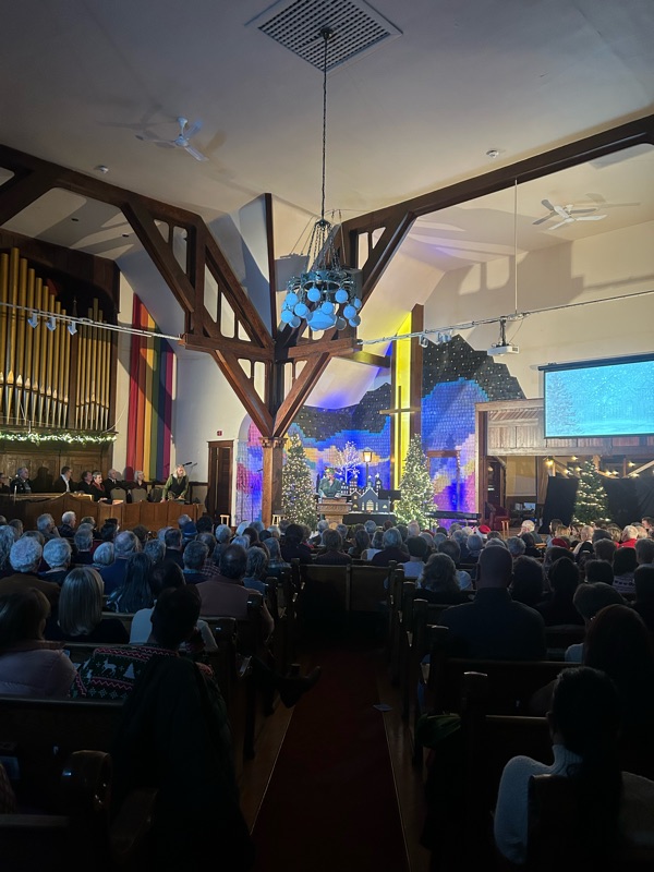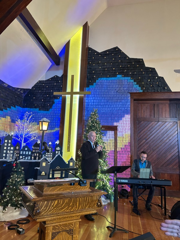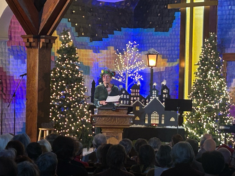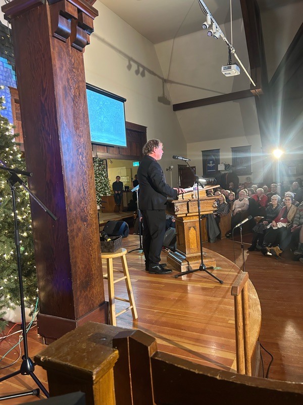 Last year my Christmas season highlight as far as performing was to play a few songs at a fundraiser in Calgary for the Hillhurst United Church. I know the picture above does t look like I’m having fun, but I was. Really!! The church is over 100 years old and the roof is unstable and needed significant repairs. Apparently the parishinors literally raised the roof when they sang their hymns and now it needed to be screwed back down. David Gray, retired CBC radio host led the charge in gathering a group of creative minded people to revive a tradition from eastern Canada where a cast recites an evening of Dicken's A Christmas Carol intermixed with music. That where I came in - to sing three or four songs throughout the readings.