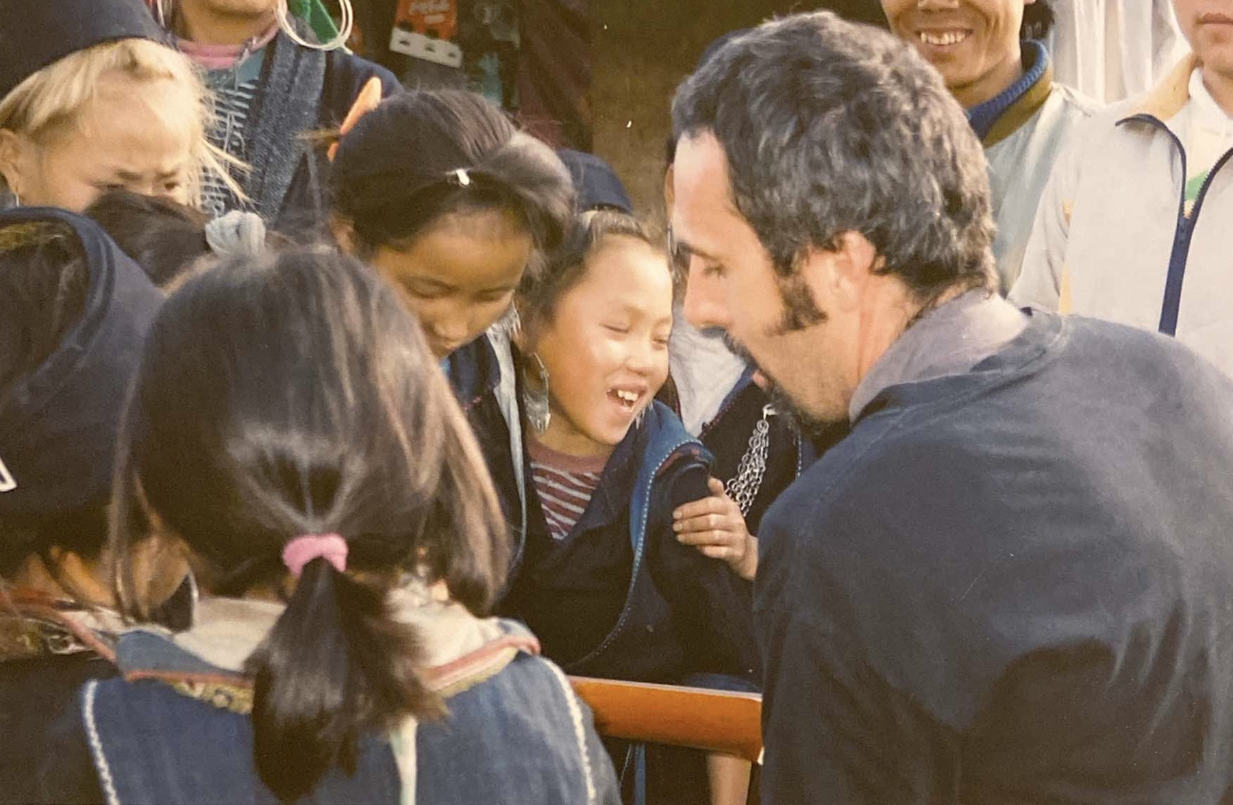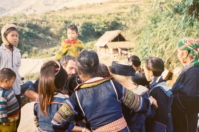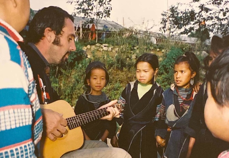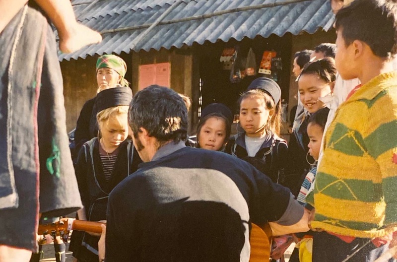 Over twenty five years ago I was in the Sa Pa region, in Lao Cai province of Vietnam where the Hmong people reside. It was right before I took the big plunge into the dark, unsure waters of being an artist full-time, leaving behind a full time teaching gig with a decent pension. I carried a little travel guitar and when finding myself in the centre of these small mountain villages, I would pull out my little guitar and begin to play and sing. Children would always come first. They weren’t shy at all. They’d gather around to listen and giggle at the funny white guy singing and playing. People would soon stick their heads out of their shops or homes to see what all the fuss was about. Looking at these photos this morning, I am struck by how long I’ve been doing this, how dark my hair was, and those sideburns. Whoa! Those sideburns.